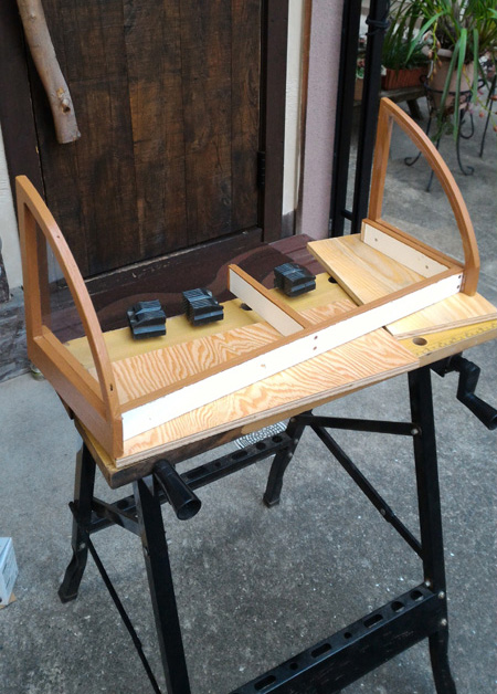 今日は底板を付けて、天辺の棒を這わせて、