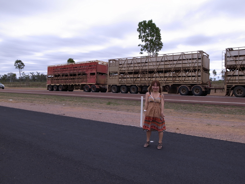 僕が自転車で旅をした時に、このロードトレインが脇を通りました。