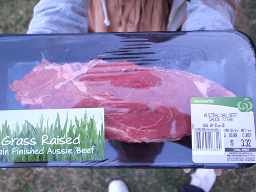 現地の安いオージービーフのステーキ。