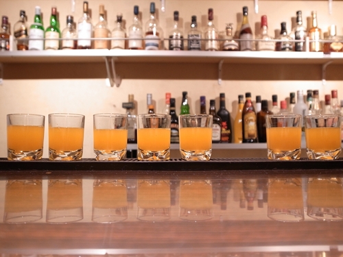 スピリッツを全てのグラスに入れ