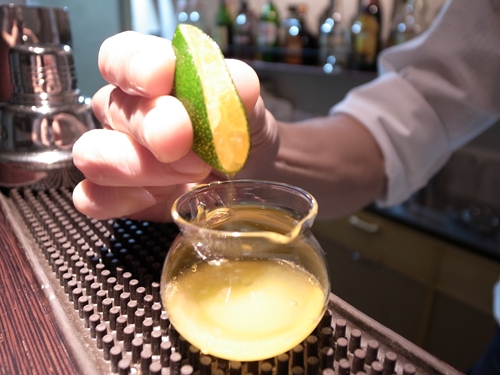 まずは、ウォッカトニックにシークヮーサー丸々2個絞り。