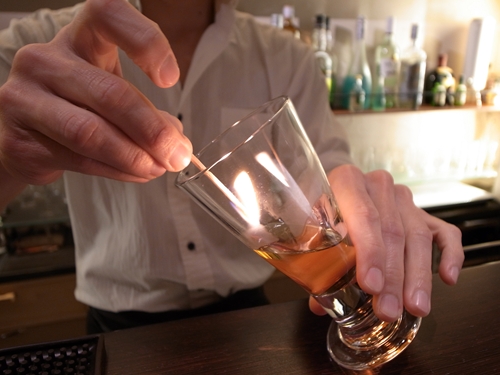 アルコールの角を取るために、ウィスキーをフランベ