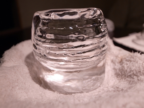 冷凍庫から出したばかりの氷のグラスは、しばらく常温でなましておかないといけません。
