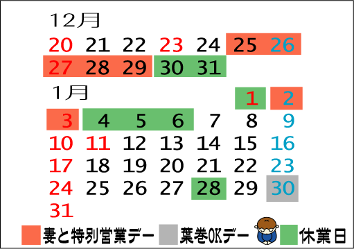 年末年始の営業日のご案内。