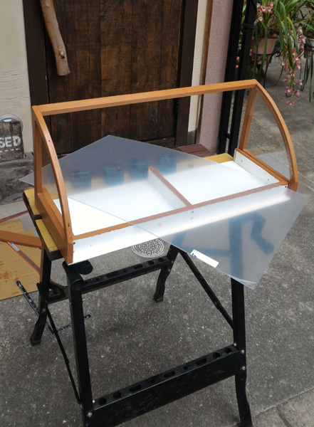 今日は、サイド内側のアクリル板を貼りました。