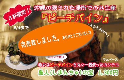 ピーチパインのカクテル完売致しました。